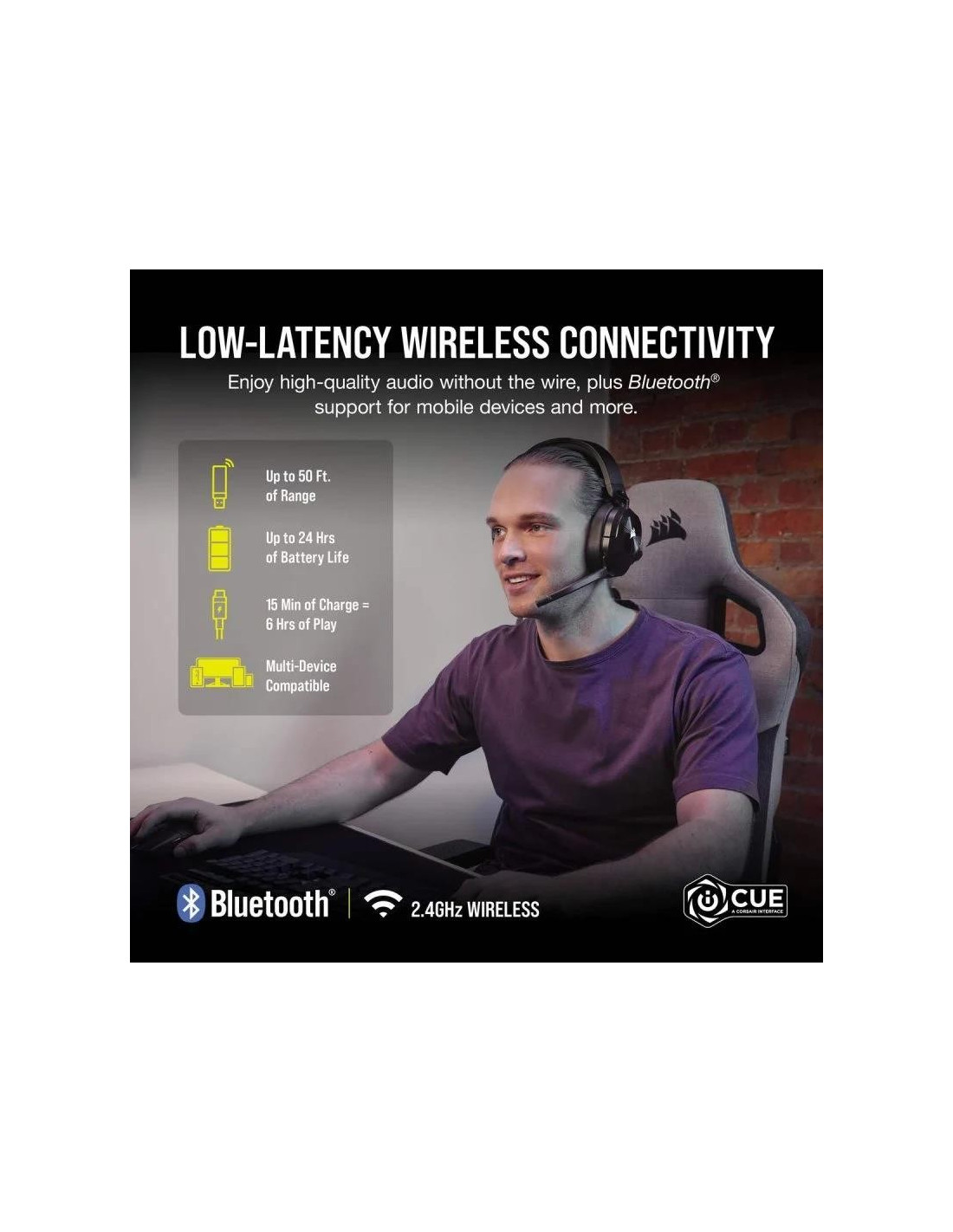 Los auriculares para juegos CORSAIR HS55 WIRELESS combinan audio inal?mbrico de baja latencia a 2,4 GHz, Bluetooth y sonido envolvente Dolby Audio 7.1 inal?mbrico de 2,4 GHz en PC y Mac, compatible tambi?n con PS5 y PS4 incluyendo compatibilidad con Tempest 3D Audio en PS5.?