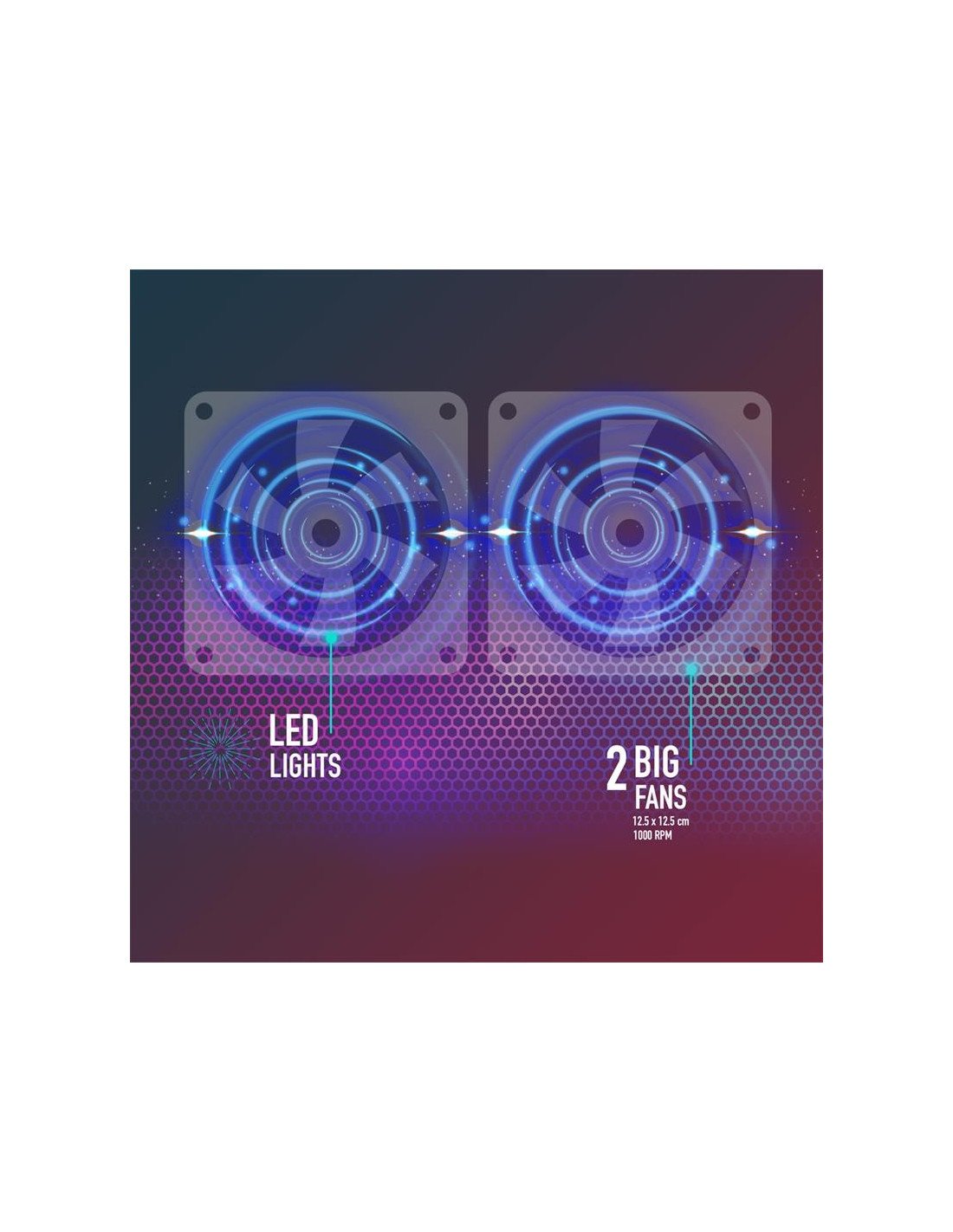 Ligero stand dise?ado para laptops de hasta 15,6? y retroiluminado mediante una atractiva luz LED de color azul. Este compacto atril sirve para mantener el ordenador port?til correctamente refrigerado, ya que dispone de dos grandes ventiladores silenciosos.