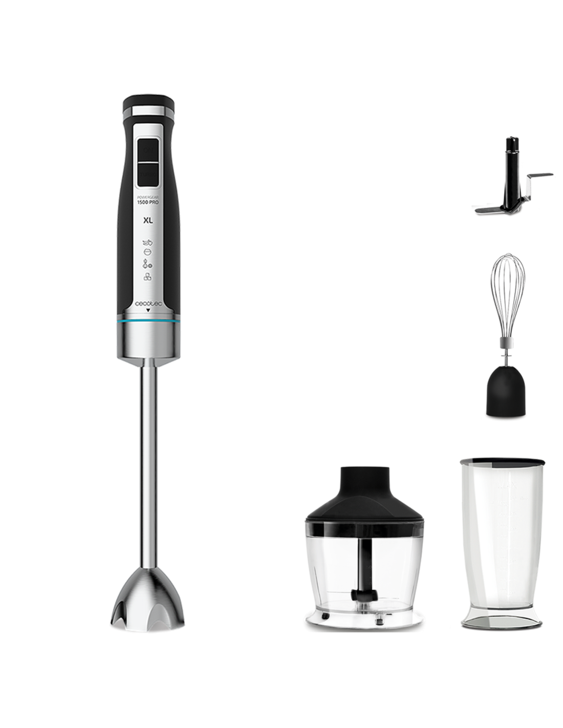PowerGear 1500 XL Pro. Batidora de Mano de 1500 W, 21 Velocidades + Turbo, Acero/Silicona, Pie XL, Cuchilla de 4 hojas, Recubrimiento Titanio, Engranaje de Metal, Incluye Accesorios