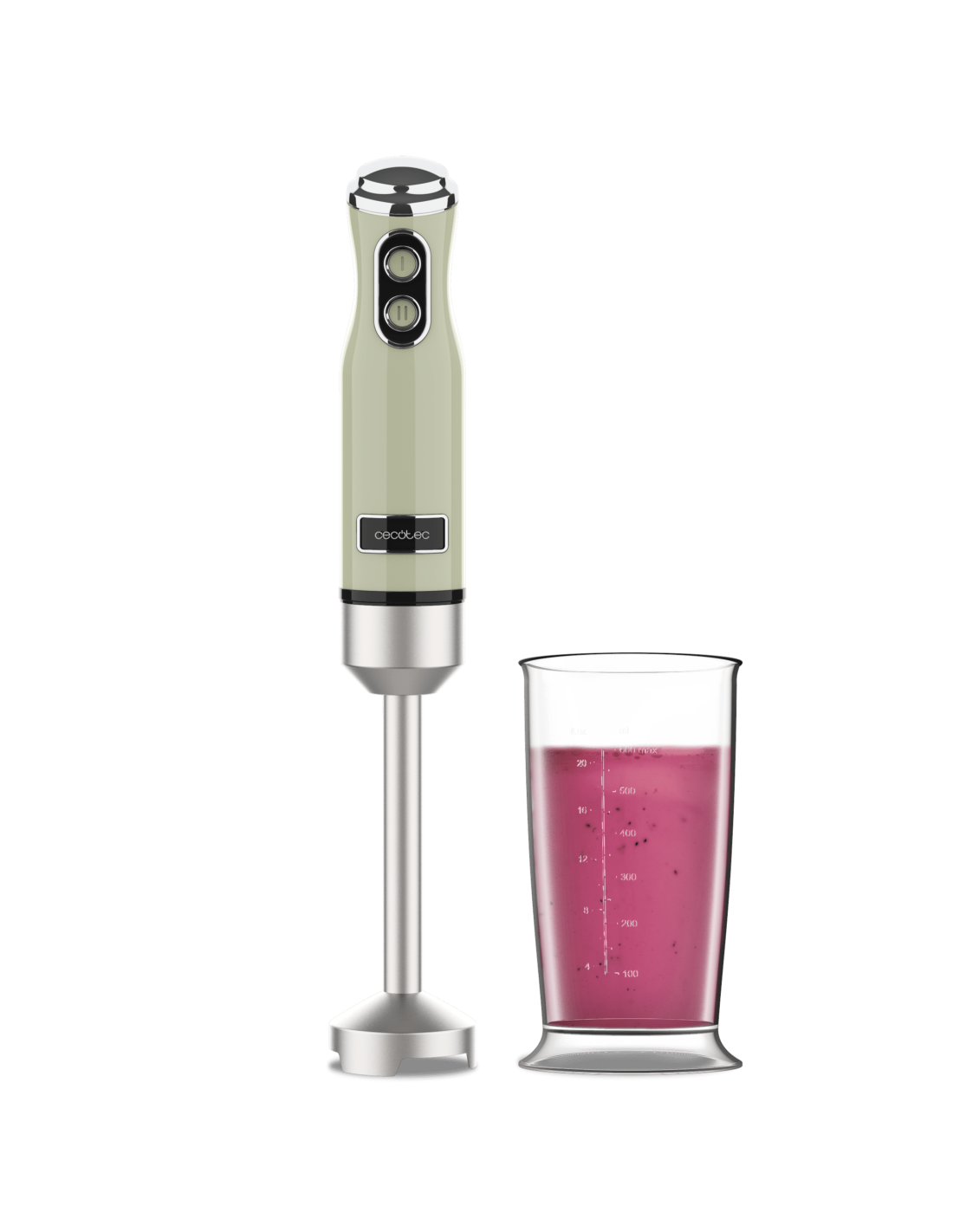 Power RetroGreen 1200MAX Batidora de mano retro con 1200 W de potencia máxima, cuchilla de 4 hojas con recubrimiento de titanio negro y velocidad ajustable.