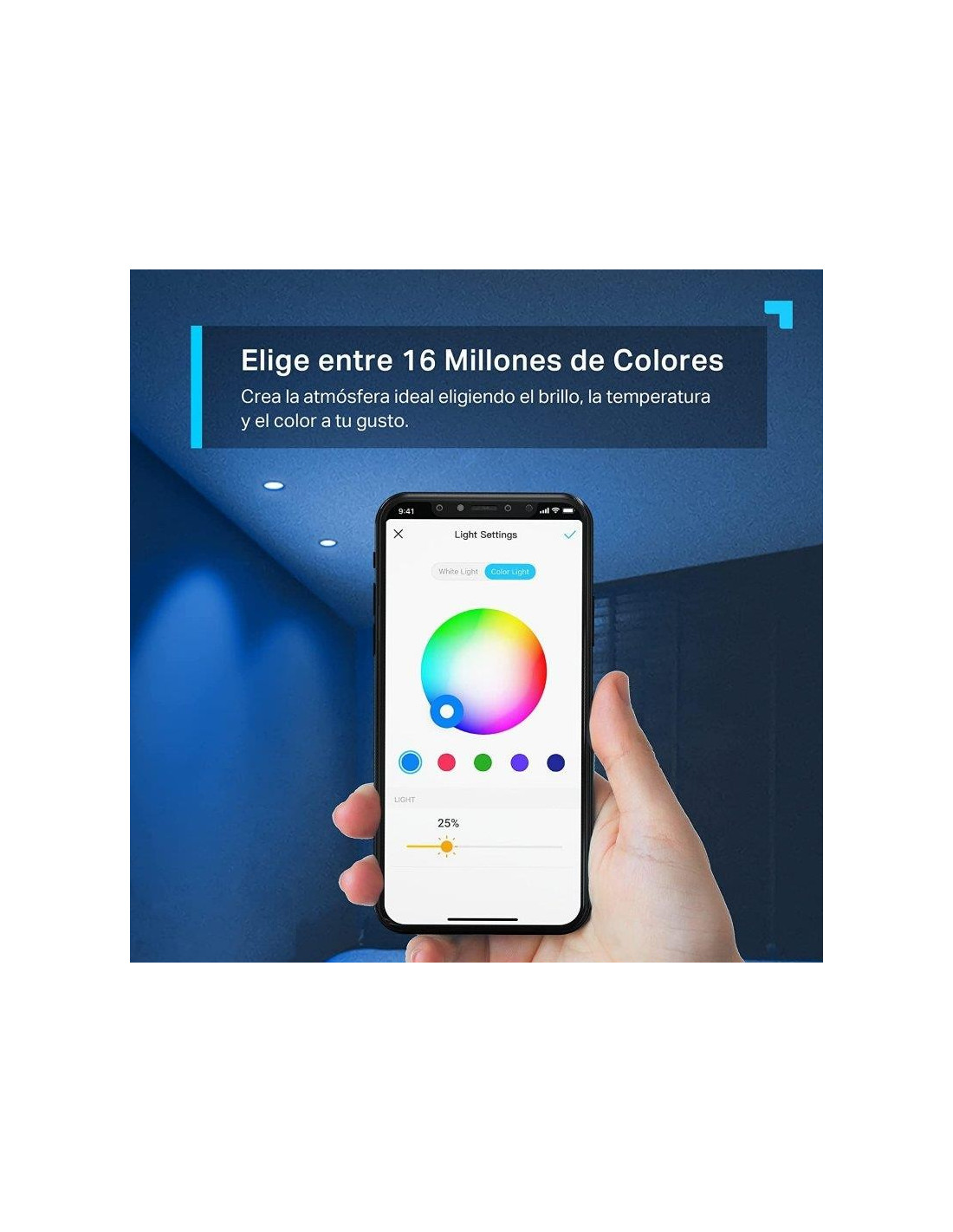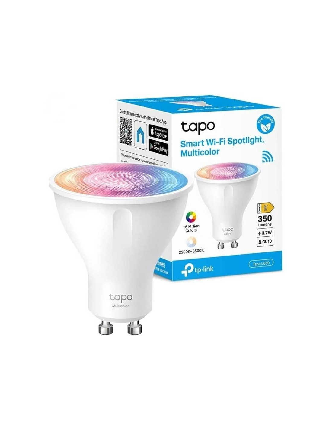 Luz Multicolor de 350 L?menes. La bombilla LED Tapo L630 se puede ajustar f?cilmente cambiando el brillo, la temperatura y el color para cada uno de los 16 millones de colores disponibles. Gracias a su casquillo GU10 es f?cilmente instalable en segundos, especialmente ideado para empotrarlo en techos proporcionando una gran iluminaci?n indirecta que no da?a?los ojos.
