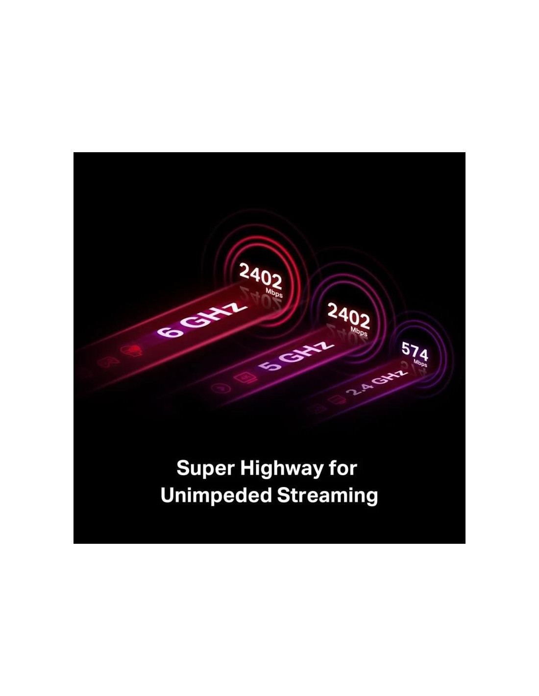 - Velocidad tribanda inigualable: aumenta las velocidades generales hasta 2402 Mbps (6 GHz) + 2402 Mbps (5 GHz) + 574 Mbps (2,4 GHz).