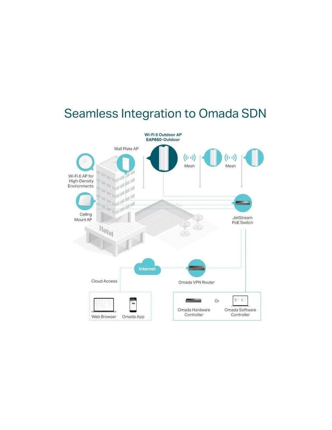 - Gesti?n centralizada de la nube: la integraci?n de Omada SDN gestiona toda la red localmente o desde la nube a trav?s de la interfaz de usuario web o la aplicaci?n Omada.