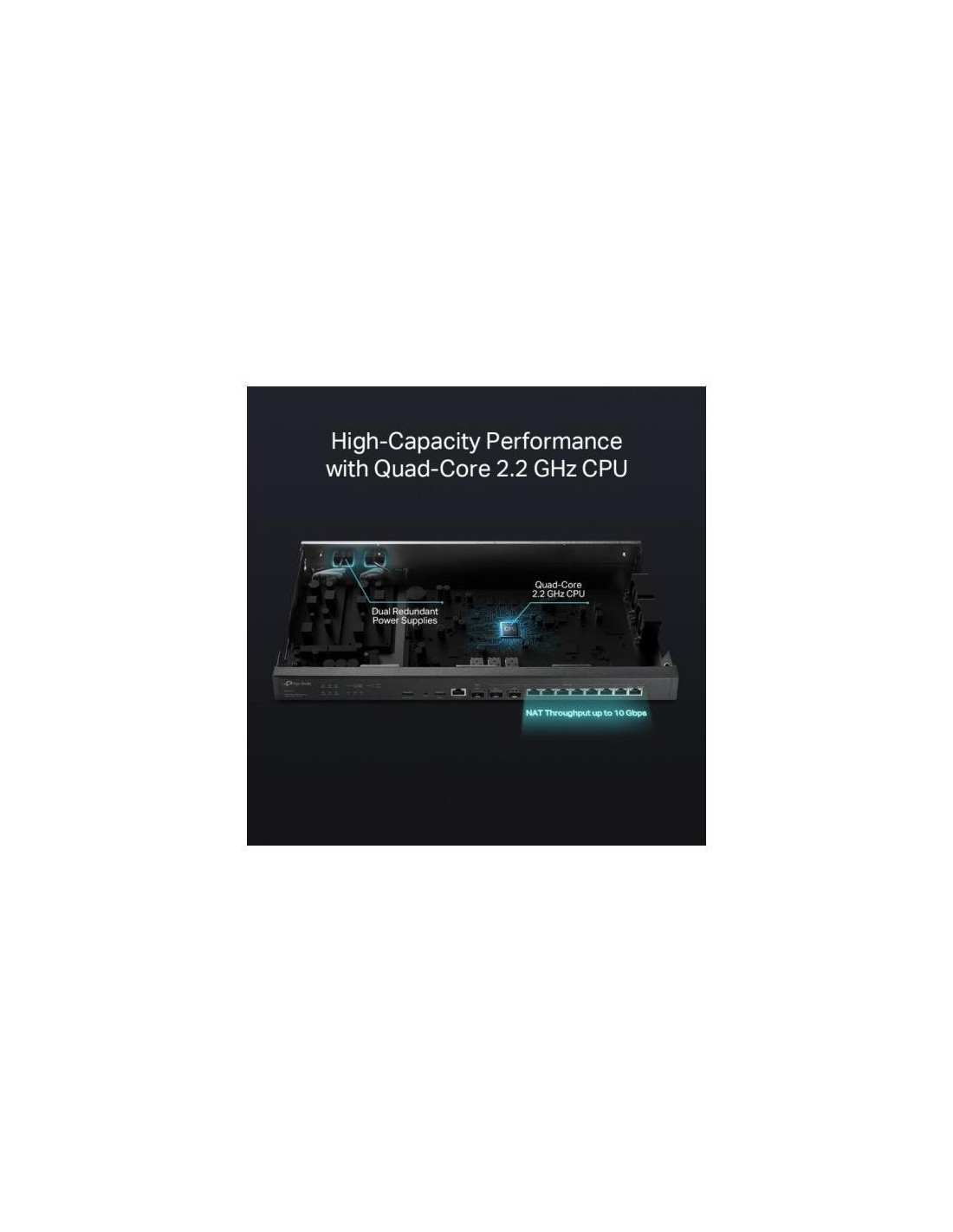 Prepara tu Negocio para el Futuro con Conectividad 10G. Router TP-Link ER8411 VPN Omada con Puertos 10G. Administra toda tu red comercial con la cantidad adecuada de potencia de procesamiento. Las fuentes de alimentaci?n duales redundantes garantizan a?n m?s la confiabilidad de clase portadora para redes empresariales. Banda ancha 10G maximizada con Omada, construye tu red ultrarr?pida con Omada ER8411, un router VPN empresarial con puertos 10G. Supera la necesidad de redes empresariales seguras, confiables y de alta velocidad, ideal para implementaciones a gran escala como oficinas, escuelas y hoteles.