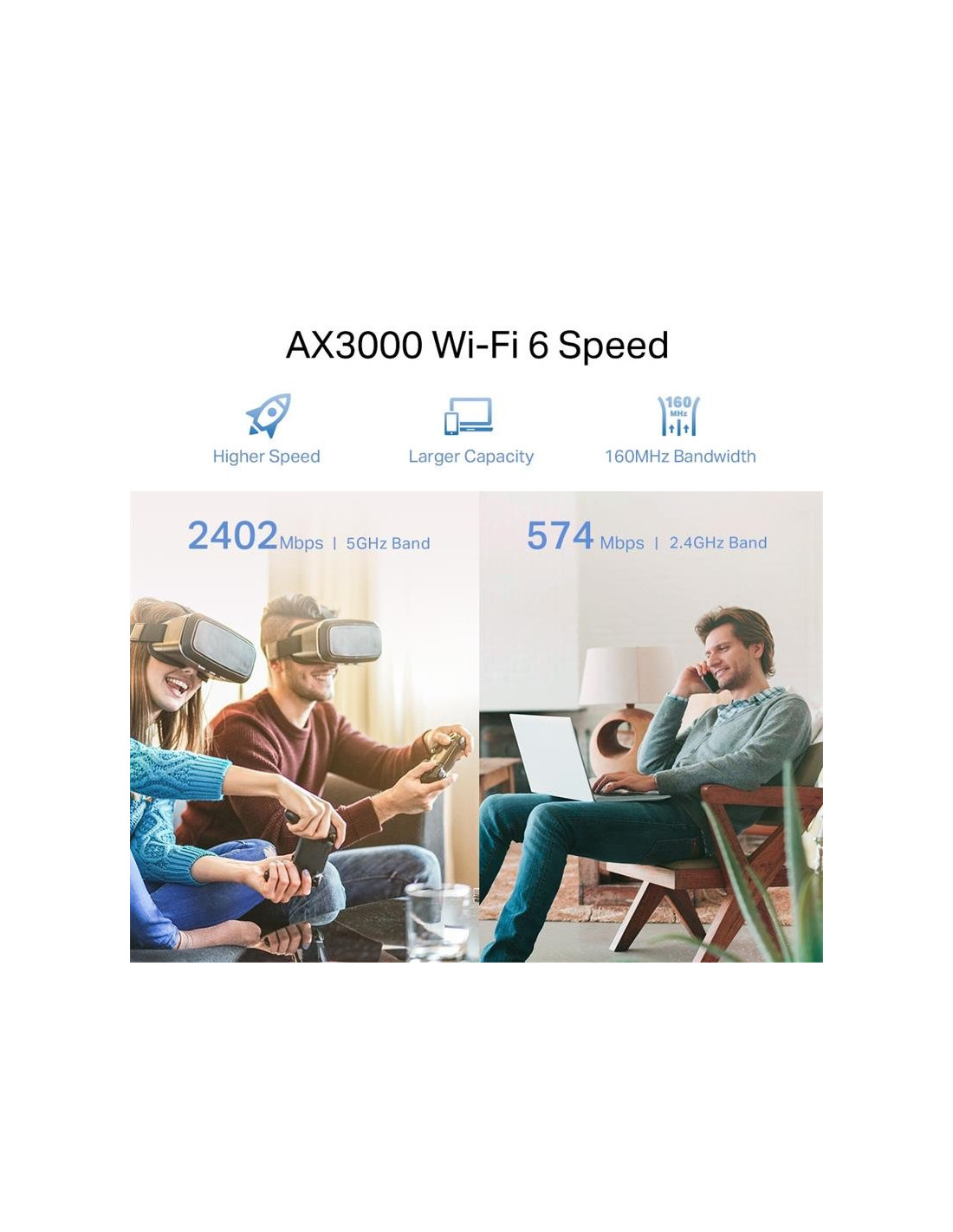 - Alta velocidad Wi- Fi 6 de Doble Banda.?Navega a m?s velocidad hasta 3000Mbps y con mayor estabilidad gracias a las dos bandas de 5 GHz (2402 Mbps) y 2,4 GHz (574 Mbps) de la tecnolog?a Wi-Fi 6.