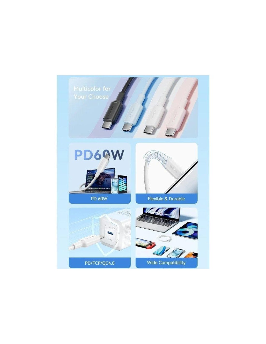 Cable USB a USB, 60W, 3A, conectores niquelados, color negro, ideal para carga y transferencia de datos.