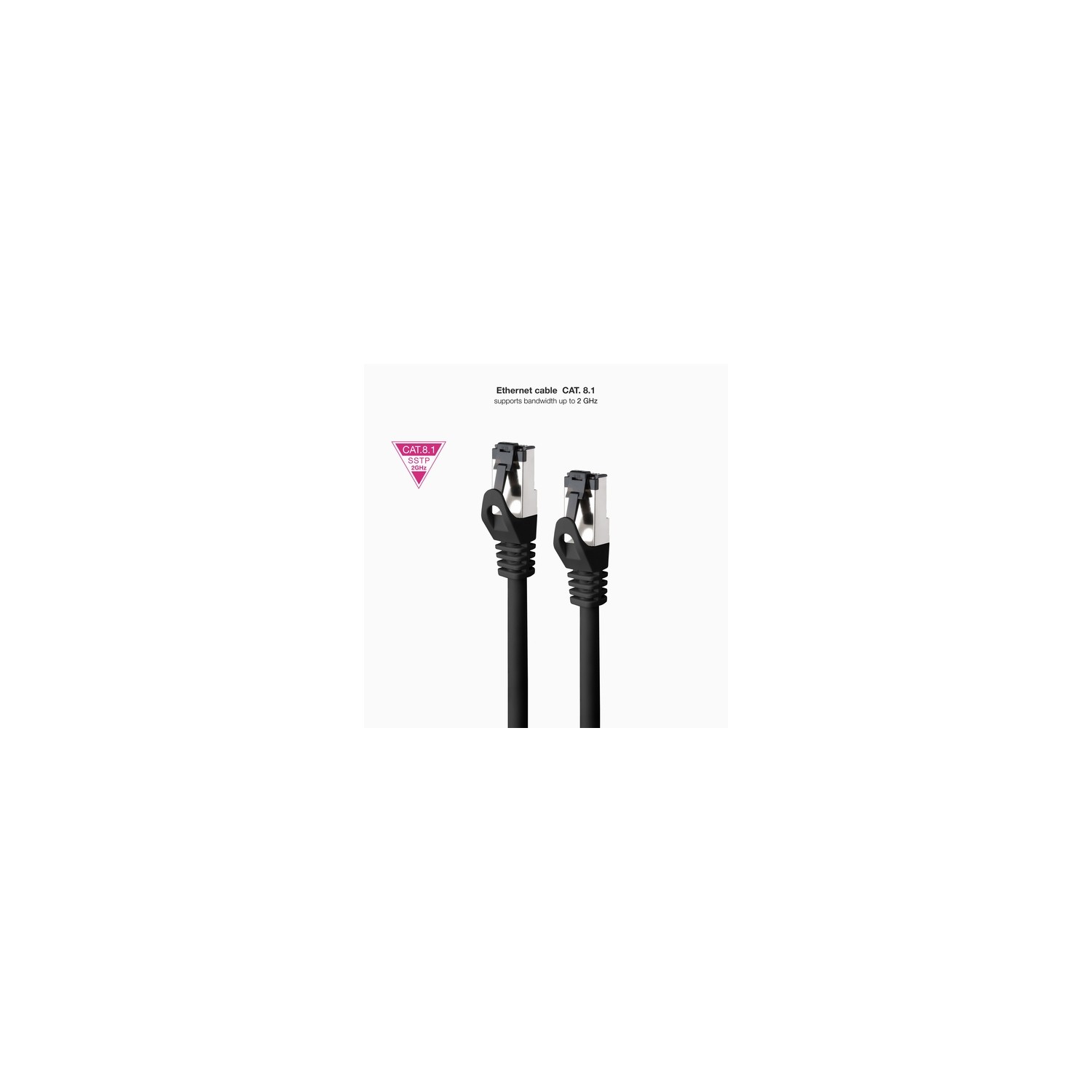 - El cable Ethernet CAT.8.1 admite un ancho de banda de hasta 2 GHz y una velocidad de transmisión de datos de hasta 40 Gbps sin interrupciones a distancias de hasta 30m.