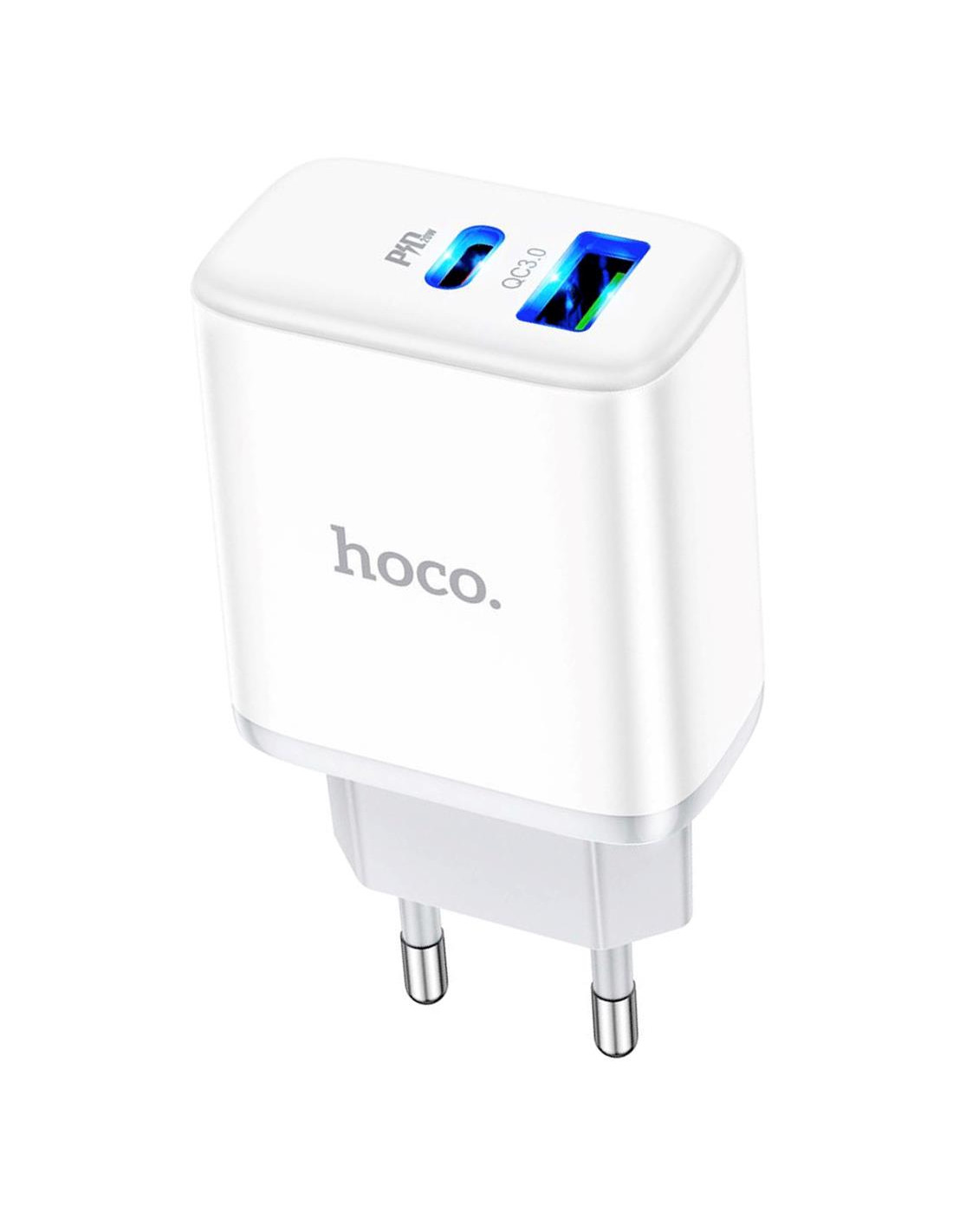 Cargador USB y USB-C 20W Hoco C105AQ Blanco