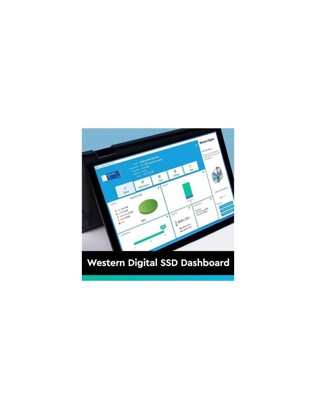 - Cree con mayor seguridad: Olv?dese del estr?s y mantenga sus proyectos en orden gracias al panel de control descargable para unidades SSD de Western Digital, que le permite supervisar el estado, la temperatura, el espacio disponible, la versi?n del firmware y dem?s caracter?sticas de la unidad.