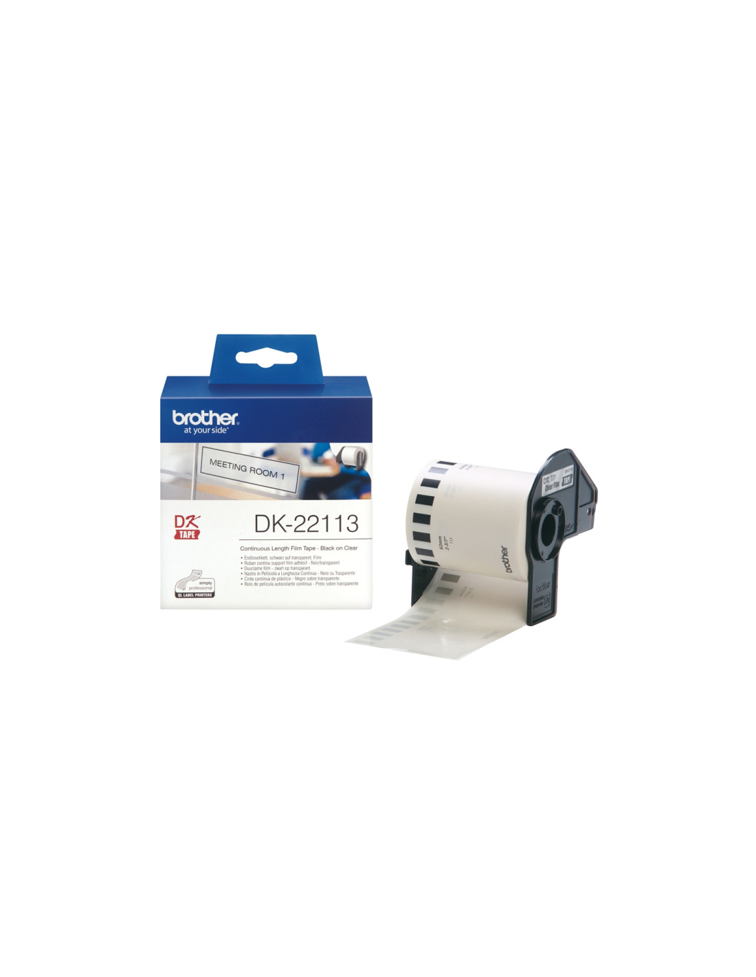 Brother Cinta continua de pelÍcula plástica (transparente), Negro sobre transparente, DK, Transparente, Térmica directa, Brother, Brother QL1050, QL1060N, QL500, QL500A, QL550, QL560, QL560VP, QL570, QL580N, QL650TD, QL700, QL710W