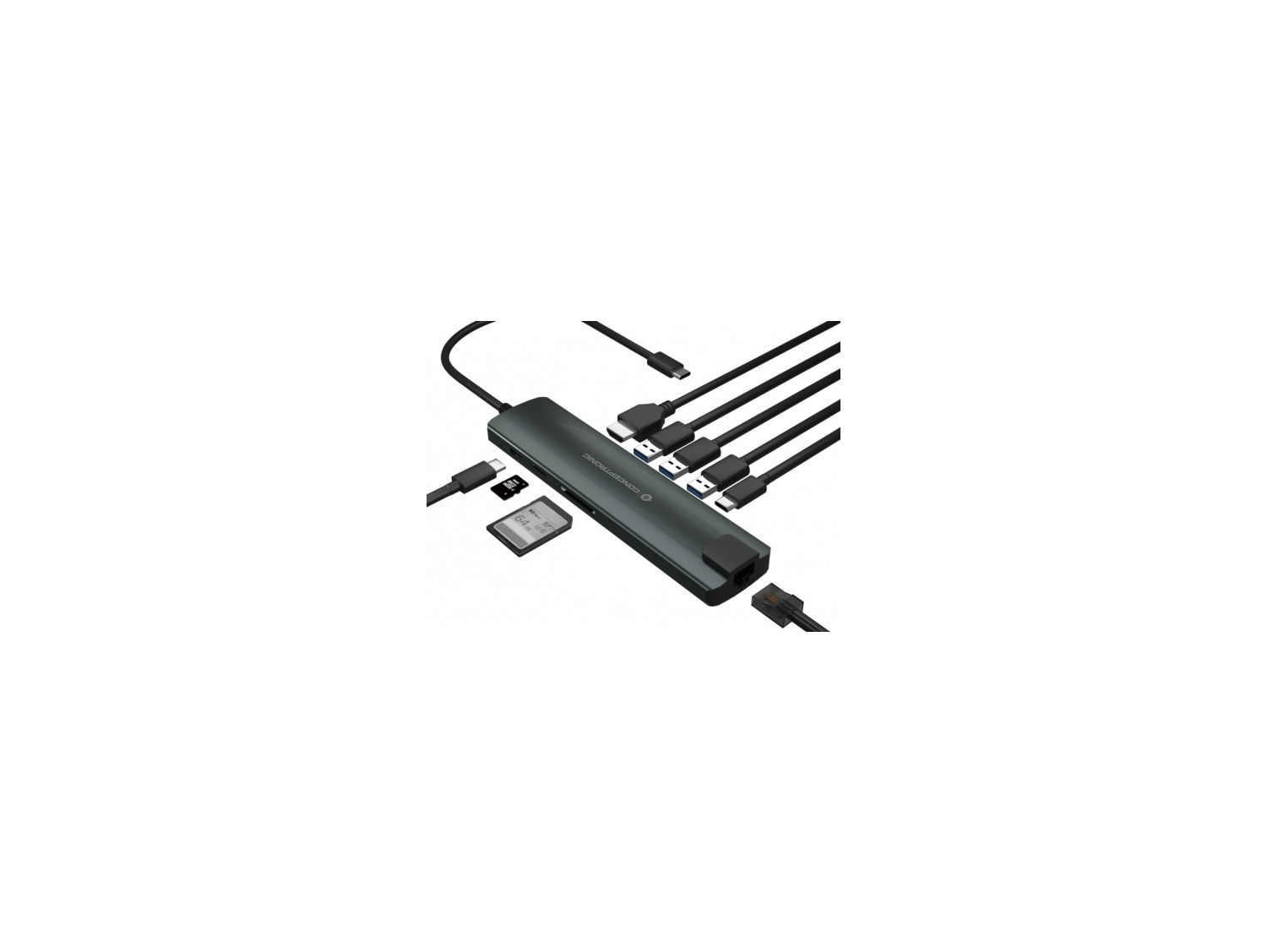 Hub conceptronic interfaz usb 3.2 gen 1 (3.1 Gen 1) type-C hdmi rj45 lector tarjeta 5000 mbit/s negro plata DONN06G