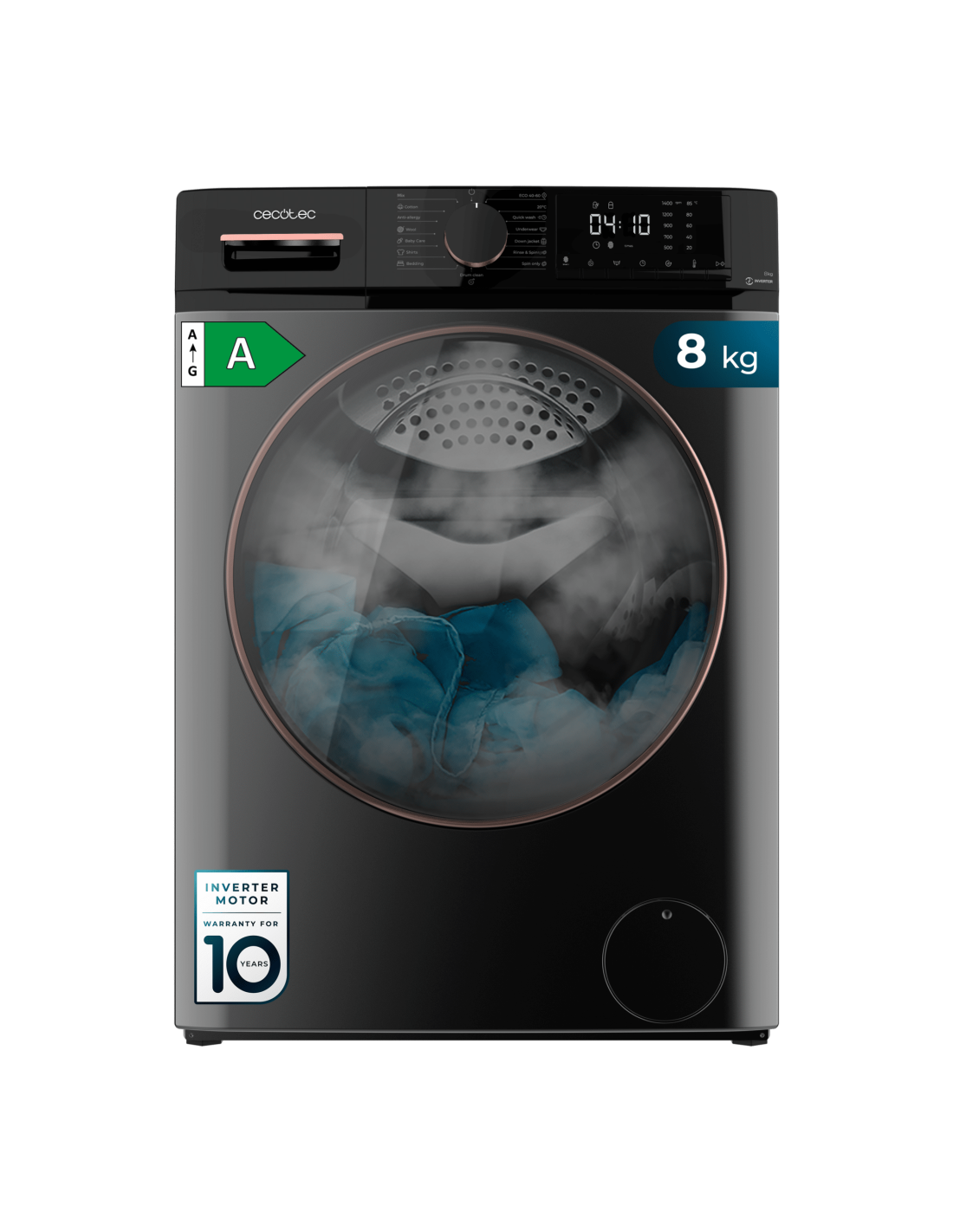 Bolero DressCode 8610 Inverter Steel A Lavadora de carga frontal steel de 8 Kg de capacidad, 1400 RPM, Clase A, Steam Max, Motor inverter plus, 15 programas, OnSmart, Fuzzy Logic, Smooth Wash, Stop&Go, Goma antibacteriana y Drum Clean.