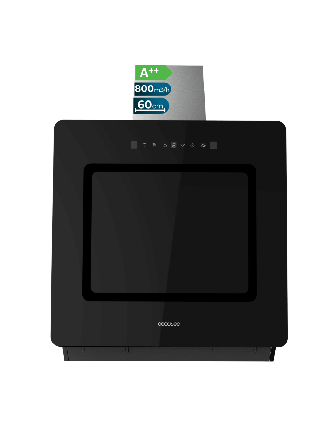 Bolero Flux DT 608002 Glass Black A++ Campana decorativa de 60cm de ancho, acabado frontal vidrio negro, chimenea inox, succión 800m3/h, Motor 210W, Clase A++, control táctil, 3 niveles de potencia, Booster, luz, filtro de carbono, Hand Movement Control y Delay Function.