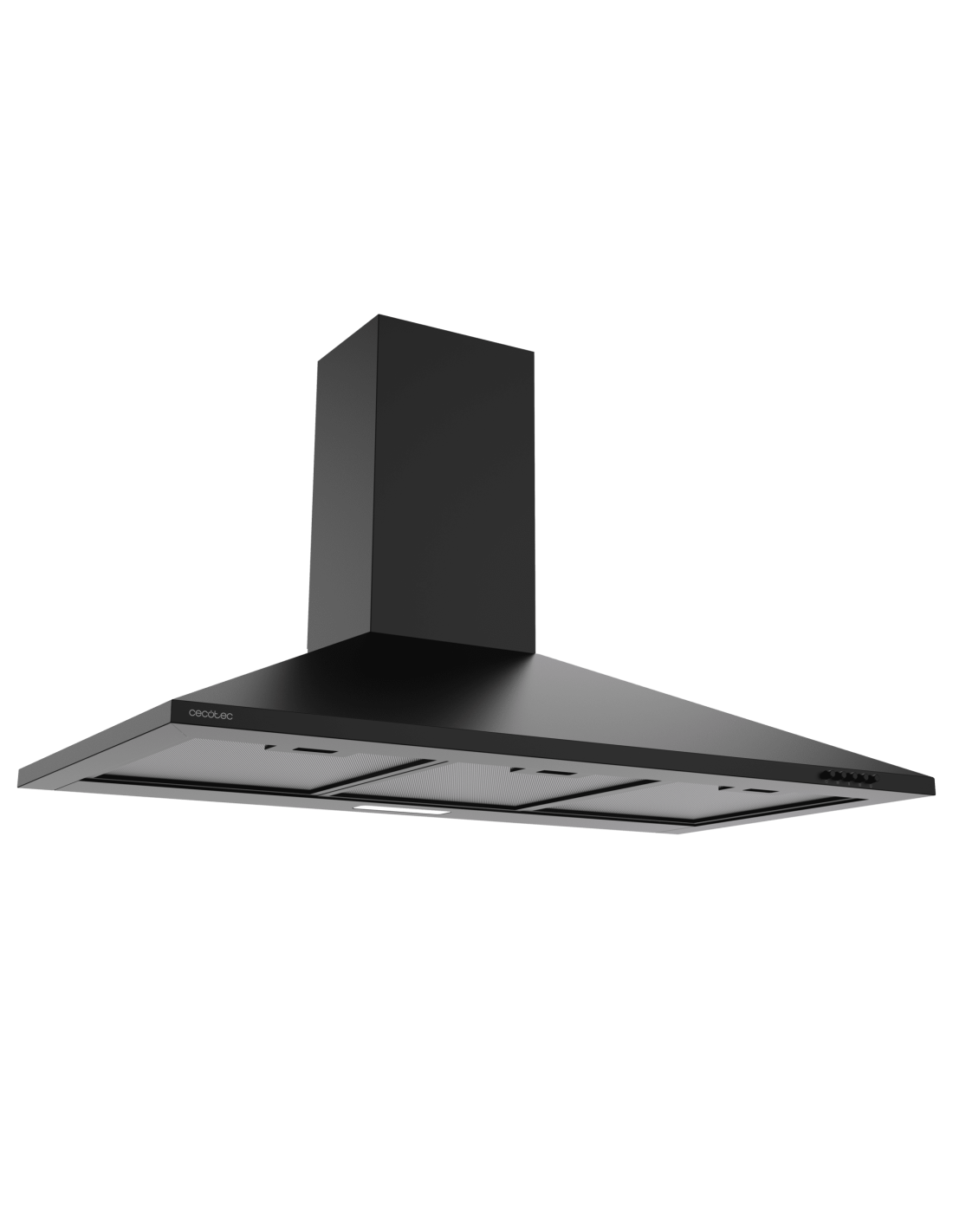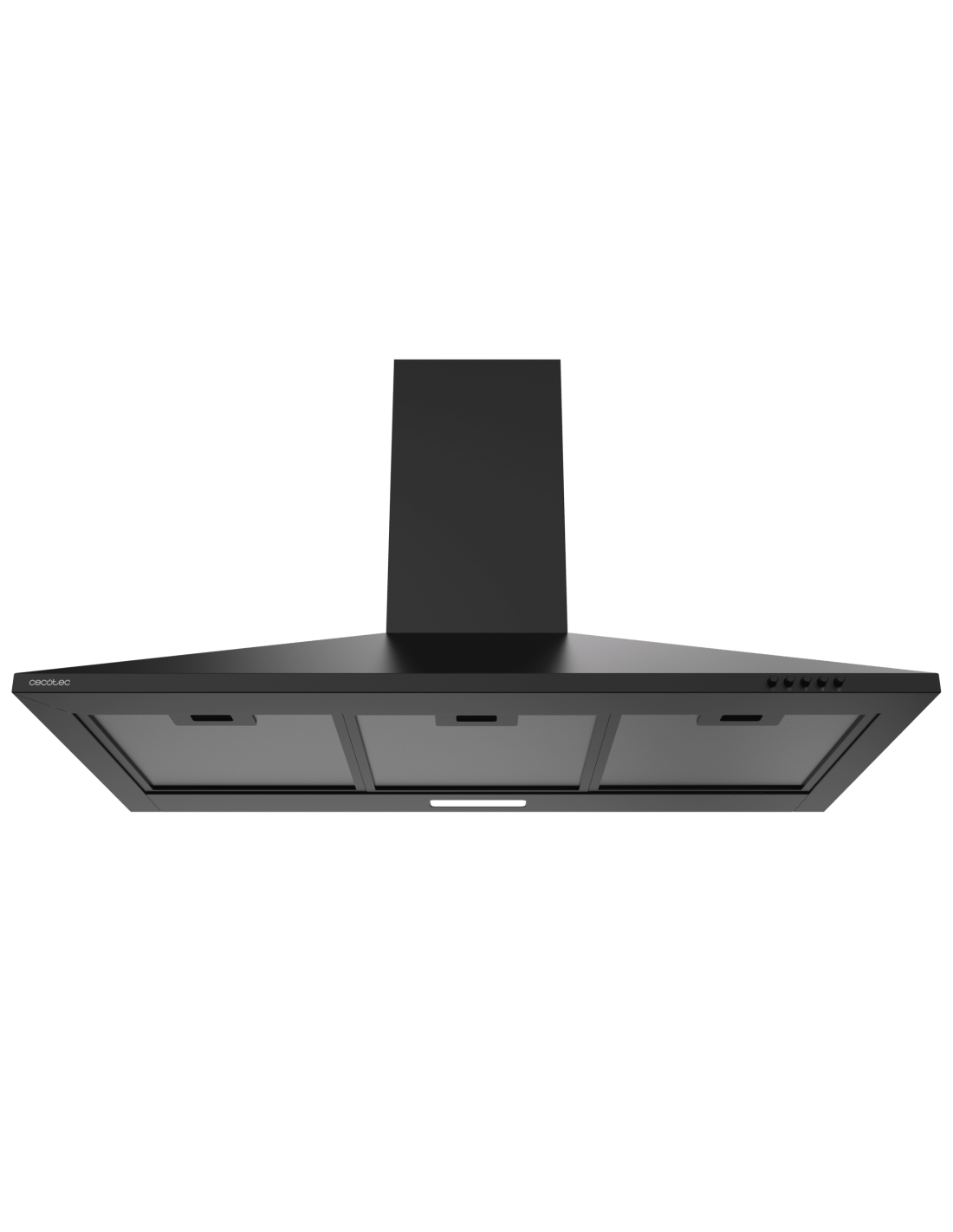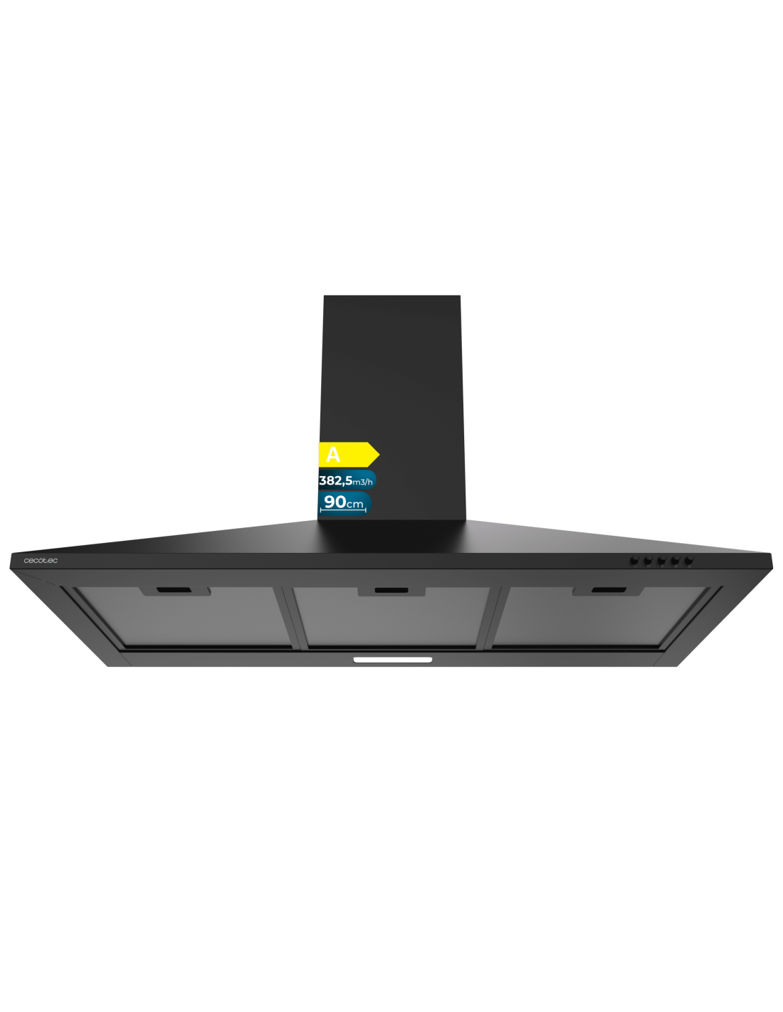 Bolero Flux PM 904000 Black A Campana Extractora Piramidal 90cm de ancho, acabado negro pintado, Motor DC, Eficiencia energética Clase A, 382,5 m³/h, Luz LED y Filtros de Carbono Incluidos