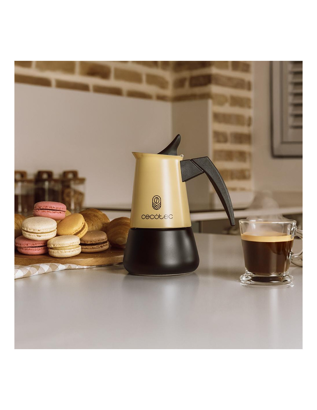 Piccolina 200 Beige Cafetera italiana fabricada en acero inoxidable de alta calidad ideal para 2 tazas de café.