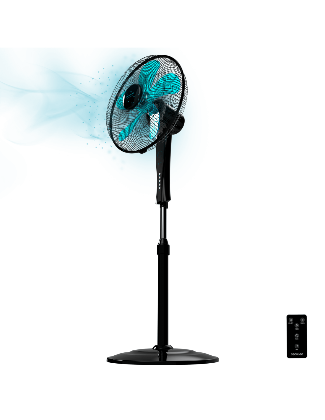 EnergySilence 530 Power Connected Black. Ventilador de Pie con Mando a Distancia y Temporizador, 50 W, 5 Aspas de 40 cm, 3 Velocidades, Motor de Cobre, Oscilante, Pantalla, Negro