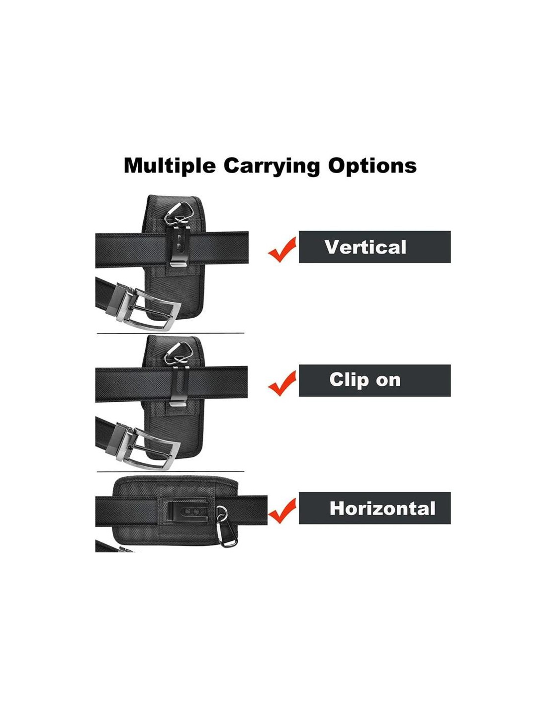 - Facilidad de Uso: Su versatilidad permite sujetarla f?cilmente en el cintur?n o engancharla en el lazo de los pantalones.