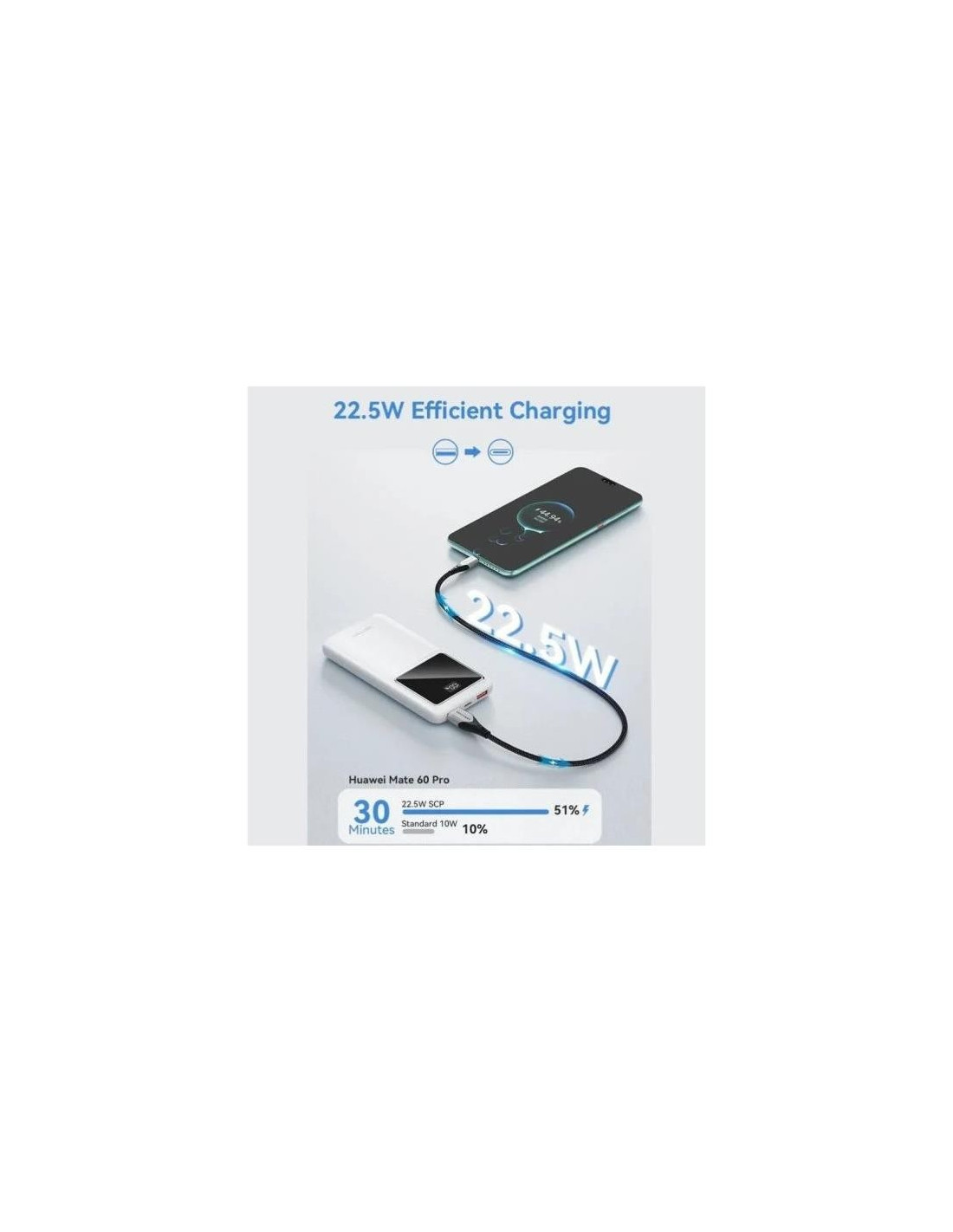 - Salida (USB-C): 5V - 3A; 9V - 2.22A; 12V - 1.67A