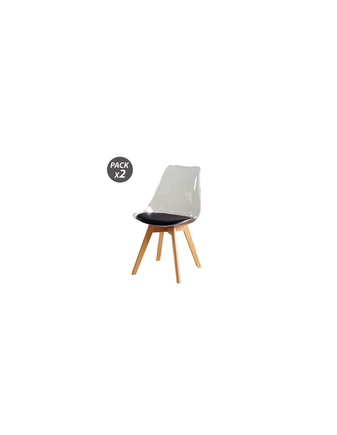 PACK 2 SILLAS DESIGN D1000 TRANSPARENTES + COJÍN NEGRO MUVIP