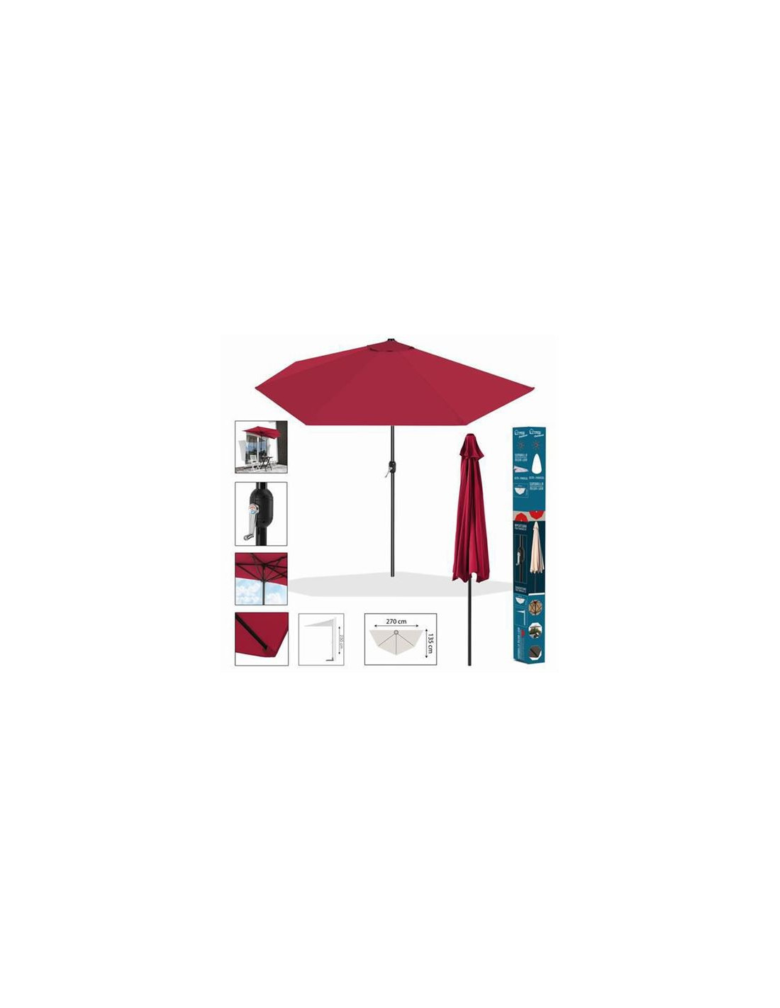 SOMBRILLA MEDIALUNA 270X135 GROSELLA
