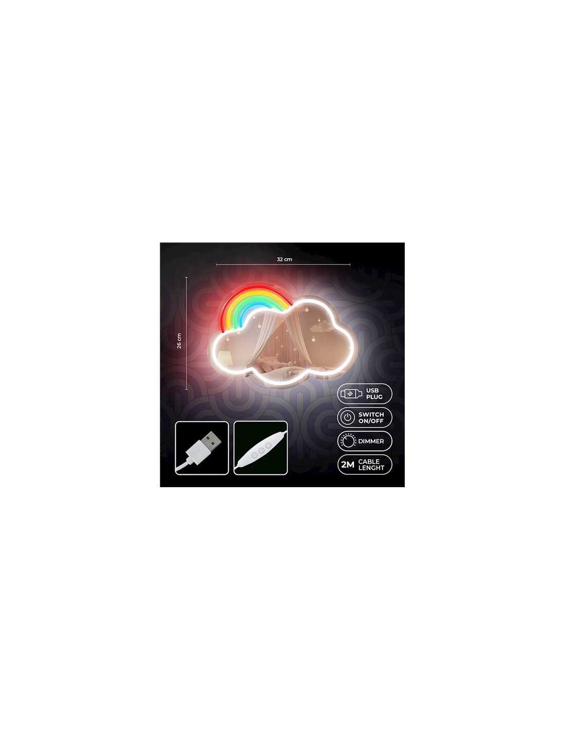 ESPEJO DECORATIVO CON NEON LED CLOUD MULTICOLOR FOREVER
