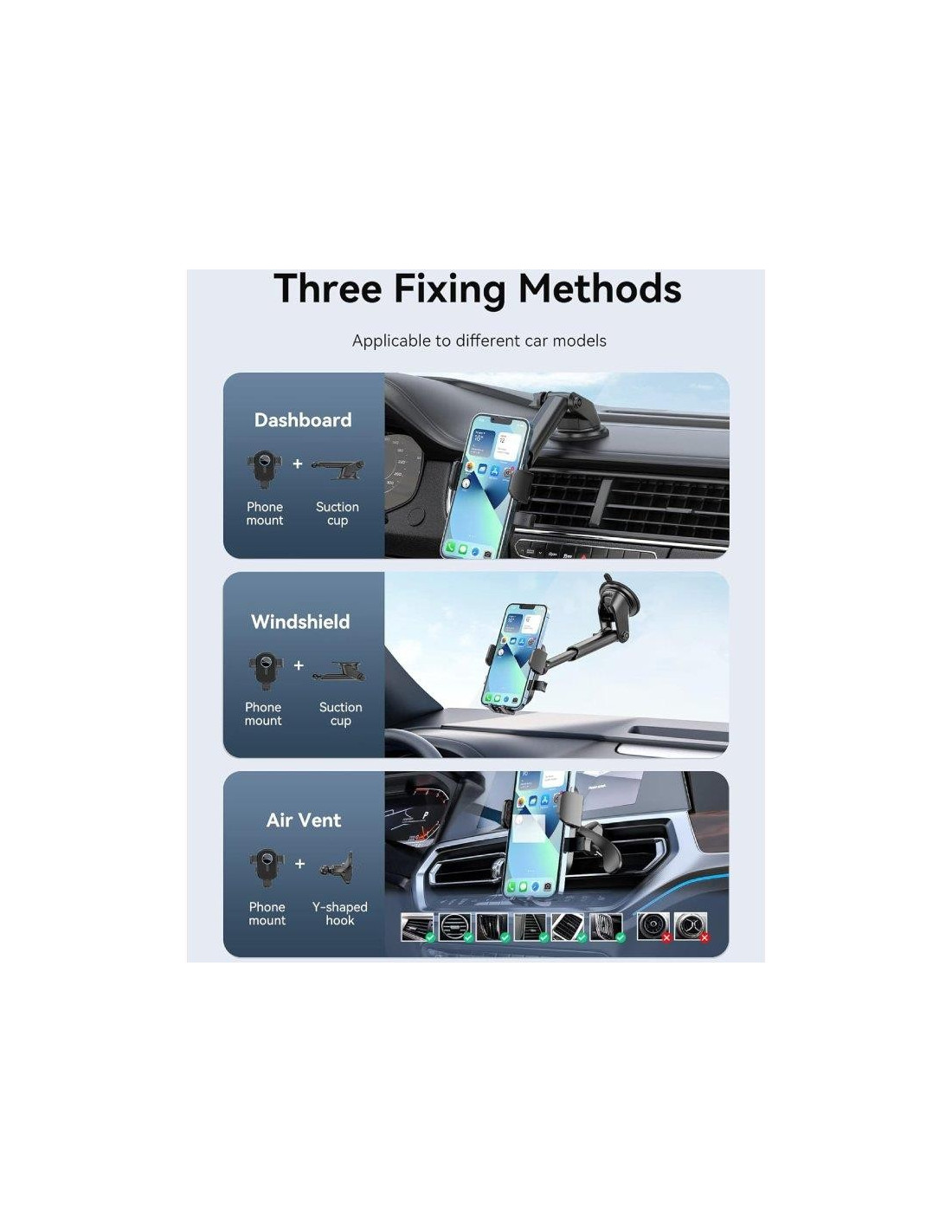 Con el soporte para tel?fono 3 en 1 VENTION, no tienes que preocuparte por las condiciones clim?ticas. Utiliza la ventosa para los d?as fr?os y el clip de ventilaci?n para los d?as calurosos. Un soporte para tel?fono que se adapta a todas tus necesidades de conducci?n.