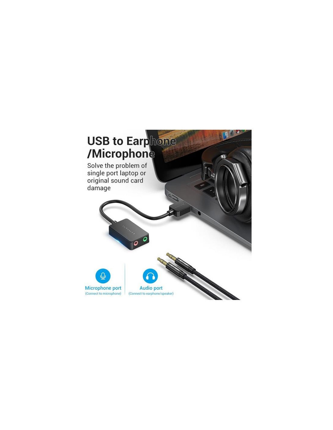 Adaptador port?til y ligero con calidad de sonido clara, reducci?n de ruido y compatibilidad extensa, ideal para laptops con un solo puerto.