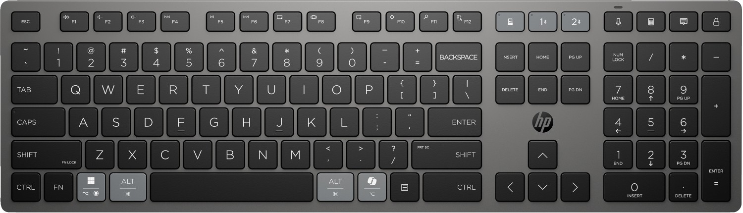 - Conéctate de forma segura y sencilla en varios sistemas operativos[4] y dispositivos: dos mediante Bluetooth y uno mediante el HP Unifying Dongle de 2,4 GHz. También puede cambiar fácilmente los periféricos conectados de un ordenador a otro con la tecla multidispositivo de este teclado[5].