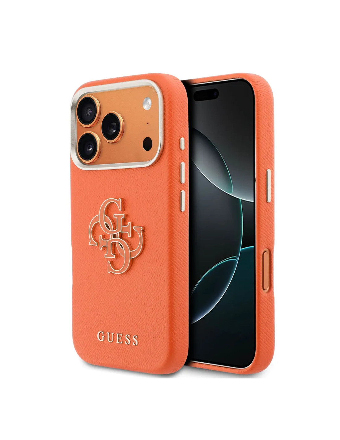 Carcasa iPhone 17 Pro Max Efecto Piel Naranja con Logo Guess