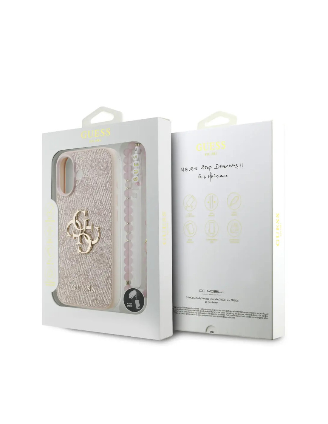 CARCASA GUESS IPHONE 17 CON CUERDA DE PERLAS ROSA