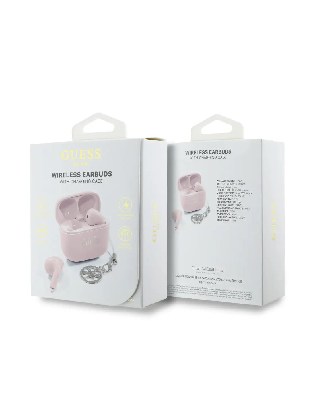 AURICULARES GUESS ROSA CON LOGO Y CHARM