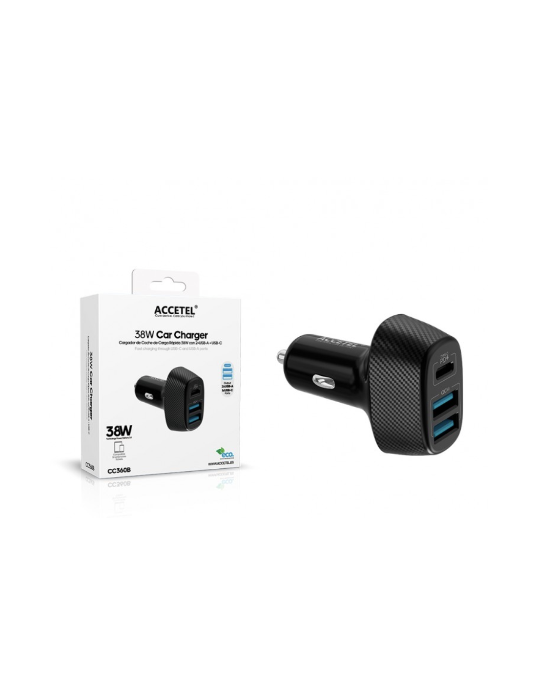 Cargador de Coche de Carga Rápida 38W con 2xUSB-A + USB-C