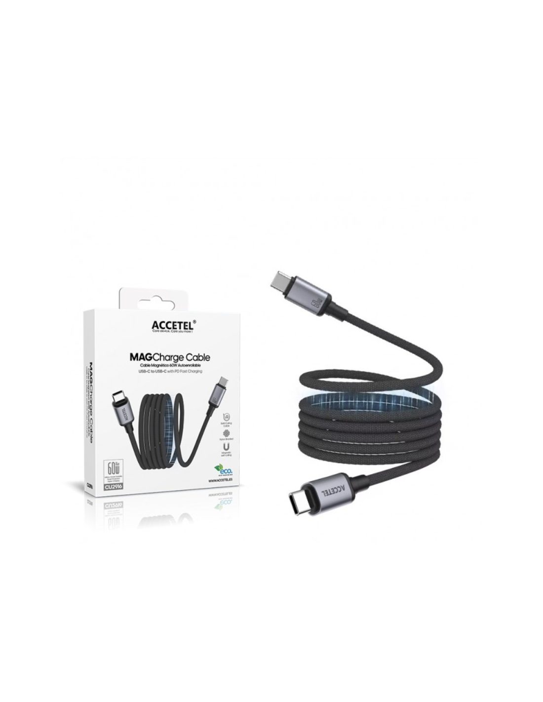 El Cable Magnético Enrollable USB-C a USB-C 60W de 1 metro ofrece una conexión rápida y segura para cargar y transferir datos. Con su diseño magnético, simplemente acerca el conector al dispositivo y se conectará de forma automática, evitando daños por conexiones incorrectas.