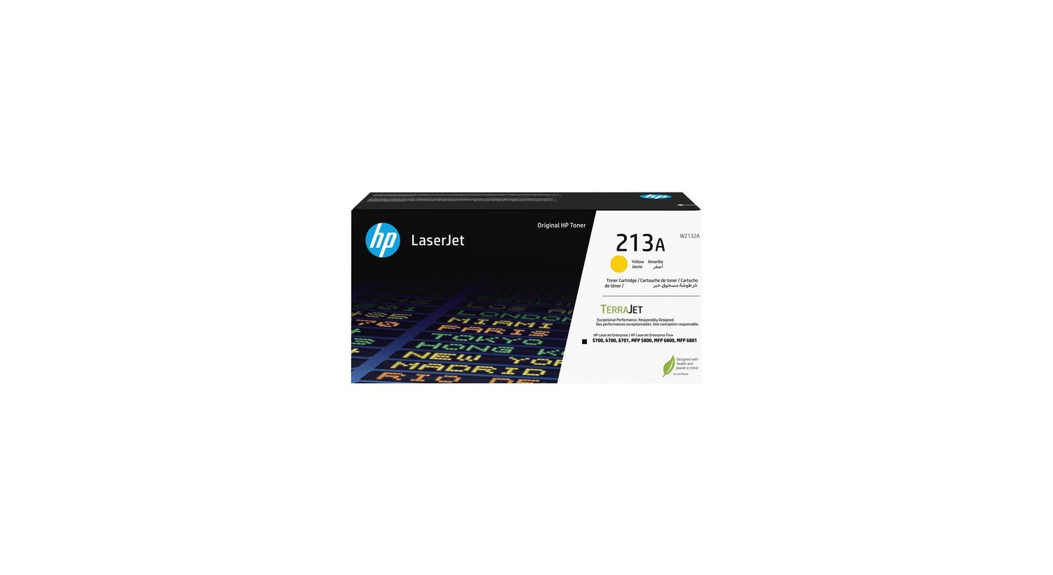 - El cartucho de tóner HP 213 funciona con: HP LaserJet Enterprise 5700, 5800, 6700, 6701, 6800, 6801 - (aprox. 3000) páginas - El tóner Original HP TerraJet, el tóner de próxima generación, ofrece un uso de tóner eficiente y una calidad destacada de impresión. Discierne más colores imprimibles, colores más realistas y detalles más definidos en las imágenes gracias al diseño innovador del tóner.[7,8] - Ideal para equipos y departamentos empresariales que tengan objetivos de sostenibilidad, que buscan impresión en color de calidad y que se preocupan sobre la seguridad y la calidad del aire en interiores. - La próxima generación de la tecnologÍa de cartuchos y tóner HP, los cartuchos de tóner TerraJet y el embalaje se han rediseñado Íntegramente para la sostenibilidad, un rendimiento destacada de impresión y seguridad en la que puedes confiar. Diseñado para una menor huella de carbono[12] con menos plásticos nuevos y menor uso energético,[6,7,8] uso eficiente del tóner con un innovador diseño de partÍculas del tóner para menos residuos y una calidad destacada de impresión con seguridad integrada,[13,14] HP lleva la tecnologÍa de cartuchos y tóner al siguiente nivel. - Contenido de la caja: Cartucho de tóner HP