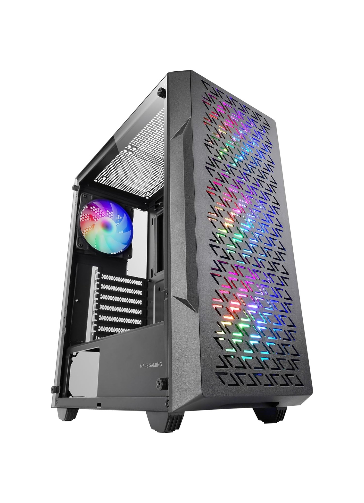 Mars Gaming MC-GEO, Caja Gaming ATX, 4x Ventiladores FRGB Rainbow 12cm, Panel Frontal Mesh Geométrico, Ventana Lateral Cristal