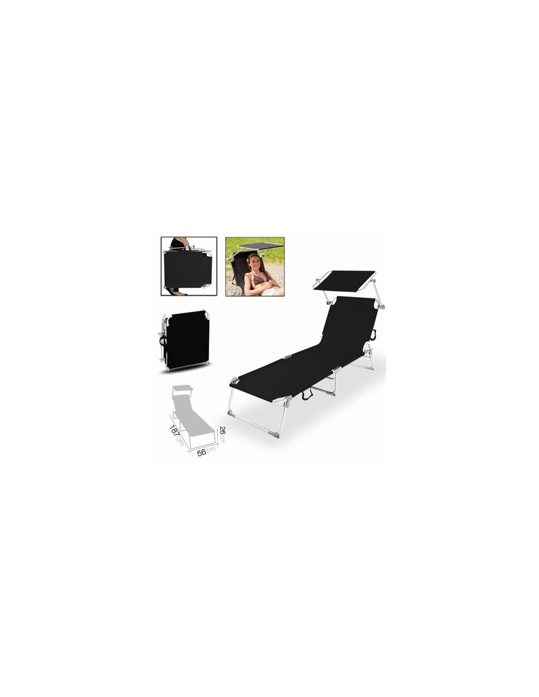 TUMBONA DE PLAYA PLEGABLE CON PARASOL NEGRA URBAN LIVING